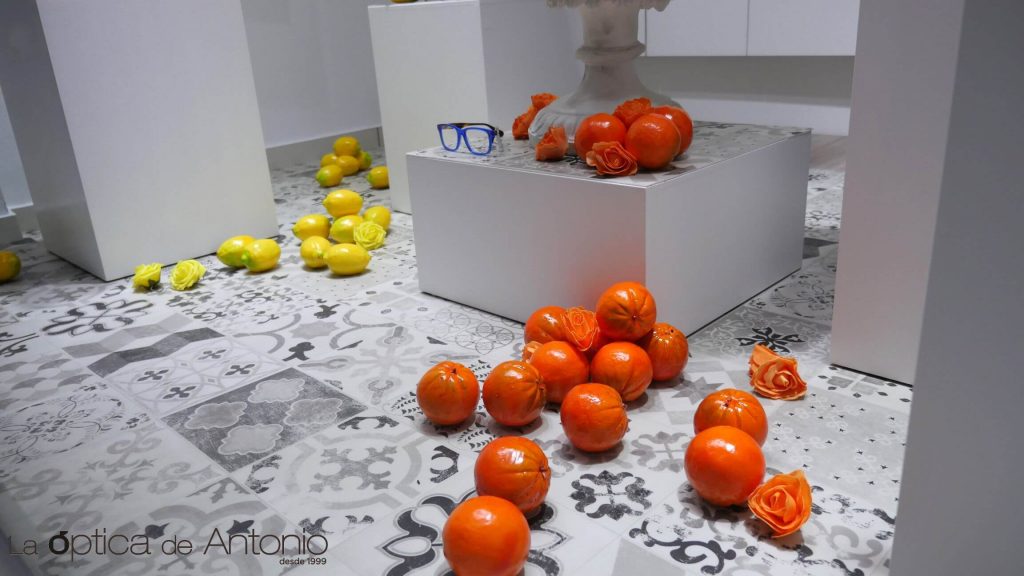Este escaparate es un homenaje a la cultura mediterránea y a uno de los cultivos que más nos representan, los cítricos. En medio de una atmósfera blanca y negra, irrumpen con fuerza colores tan vibrantes como el naranja y el amarillo. Esto mismo ocurre en las nuevas colecciones, el color ha llegado al mundo de las gafas para quedarse y dotar al rostro de una nueva imagen.