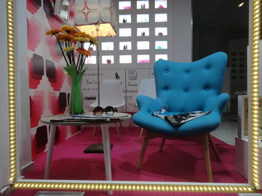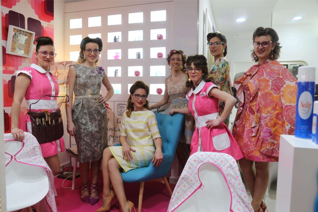 Una peluquería de señoras es un espacio cambiante. En él, se dan cita muchas de las propuestas más punteras de la moda: vestuario y peinados van de la mano, y por supuesto complementos como nuestras nuevas colecciones de gafas de sol y graduado. De ahí, surge esta llamativa propuesta de poner en escena un escaparate vivo, una dinámica que resultó atractiva, divertida y que captó la atención de cientos de espectadores, incluso a través de televisión en directo. Planteamos el cristal del escaparate como dos espejos de gran formato en los que se miraban las clientas de la peluquería. A través de éstos, los viandantes podían observar cómo evolucionaba el look de nuestras clientas.