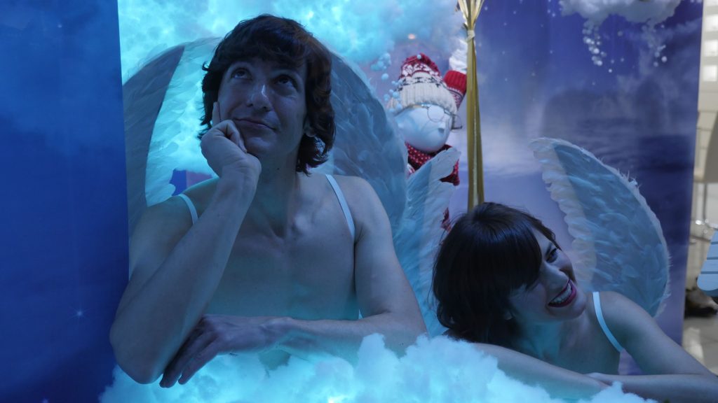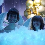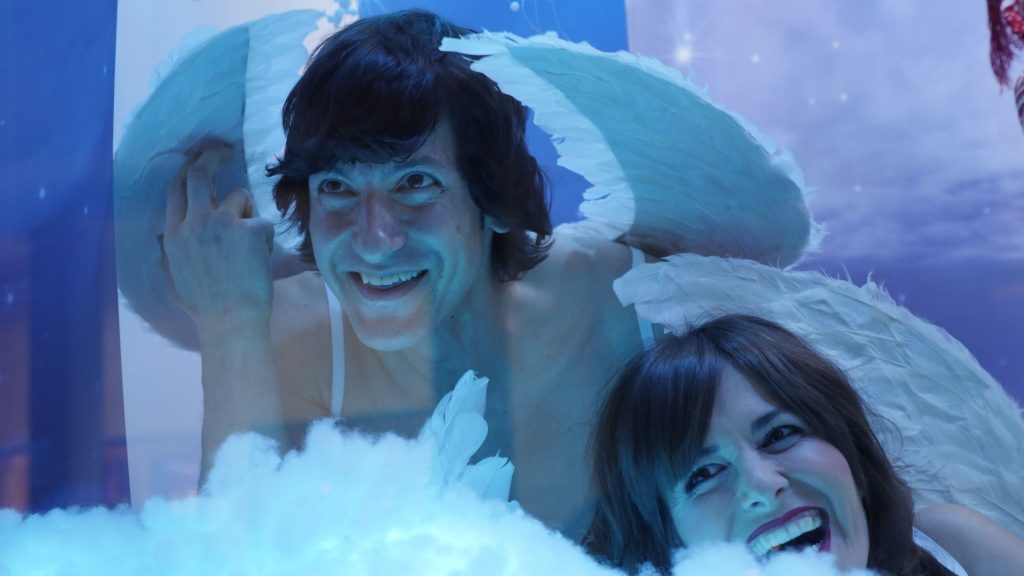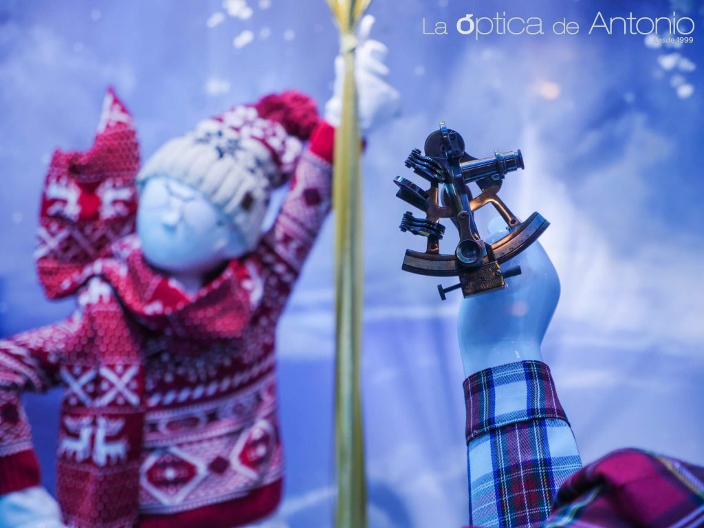 La metáfora escénica de un niño que se eleva al cielo impulsado por unas bolas de Navidad y otro que juega entre las nubes, introduce diferentes instrumentos de la astronomía clásica y la navegación. Artilugios que desde el s. XVI hasta bien entrado el s. XX, se han venido utilizando y en los que existe una importante aplicación óptica: el astrolabio de Rojas, la esfera Armilar, el sextante de navegación…