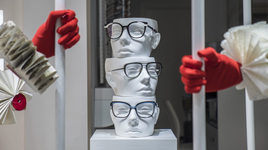 En el punto de inflexión aparecen las famosas «cabezas» dónde exponemos algunas monturas de graduado. Las cuatro alabardas elevan el montaje en el lateral derecho, junto con las manos articuladas y otras cabezas, que evocan a los soldados de la Reina. La iluminación es predominantemente fría a excepción de la cortina de lámparas que envuelven a la Reina.