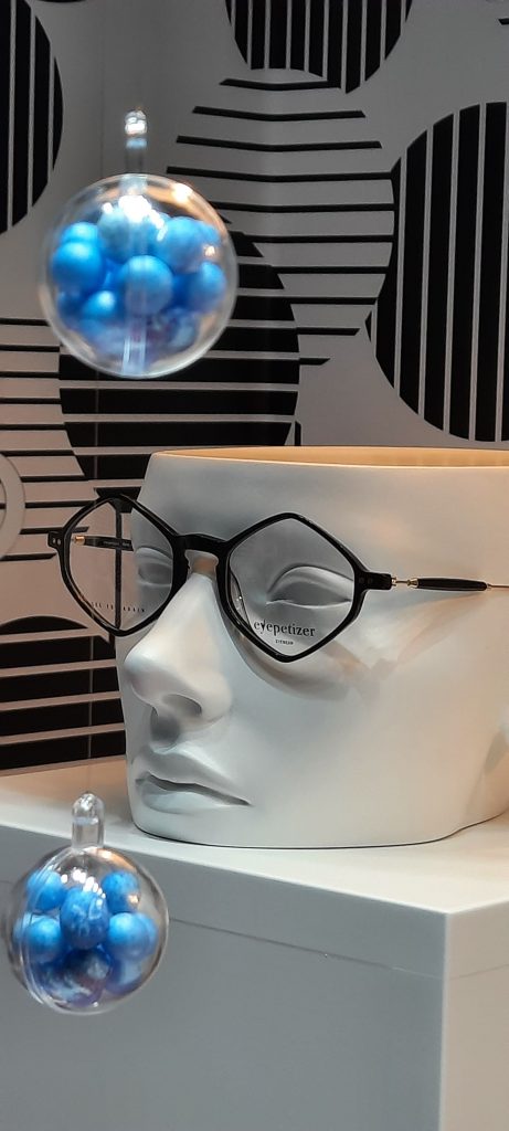 El escaparate consta de dos niveles: un primer nivel en el que aparecen manos articuladas y un segundo nivel, más alto y alejado en el que aparecen maniquíes con gafas. Los guantes de color rojo establecen un patrón repetitivo interrumpido por las manos de guantes color verde. Esta técnica pretende llevar la atención del espectador hacia estas últimas, que a su vez, son las que consiguen atrapar las lentillas que caen desde el cielo.