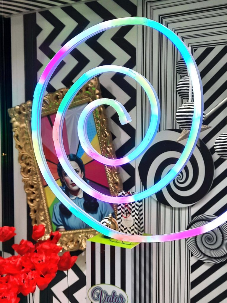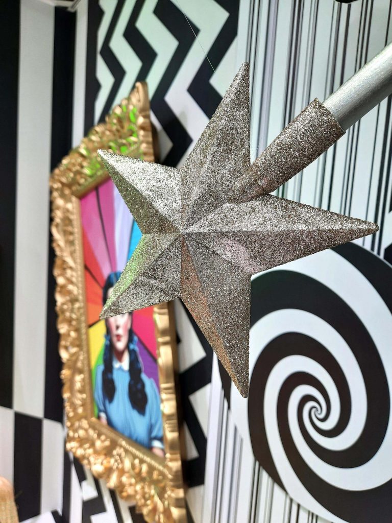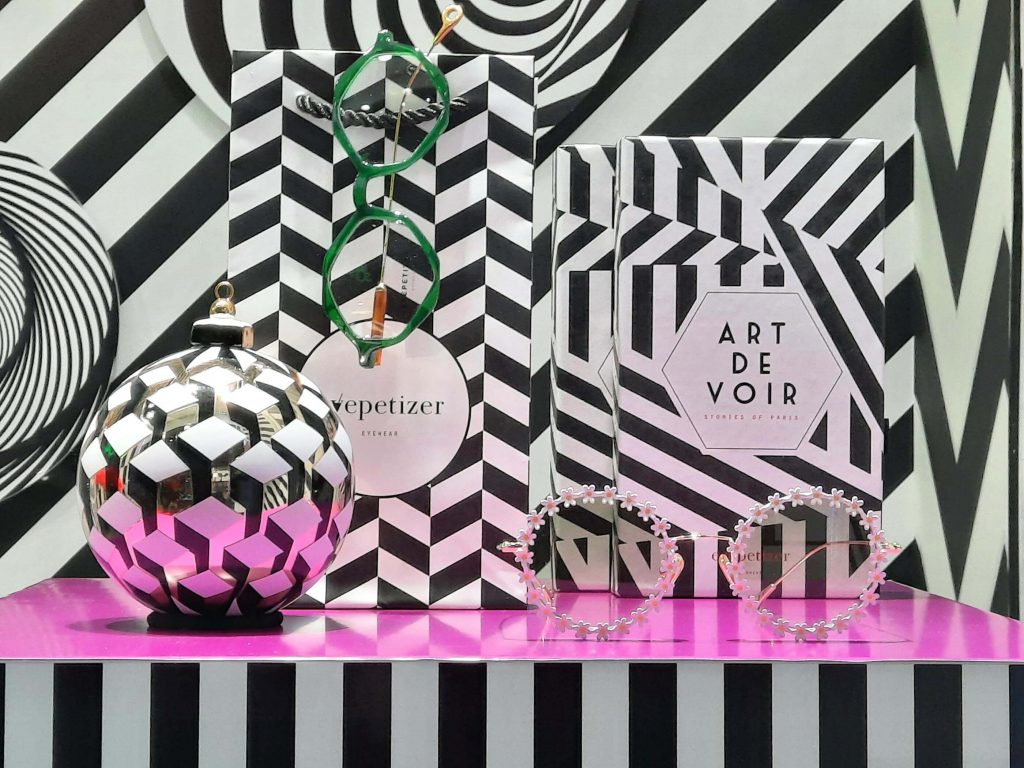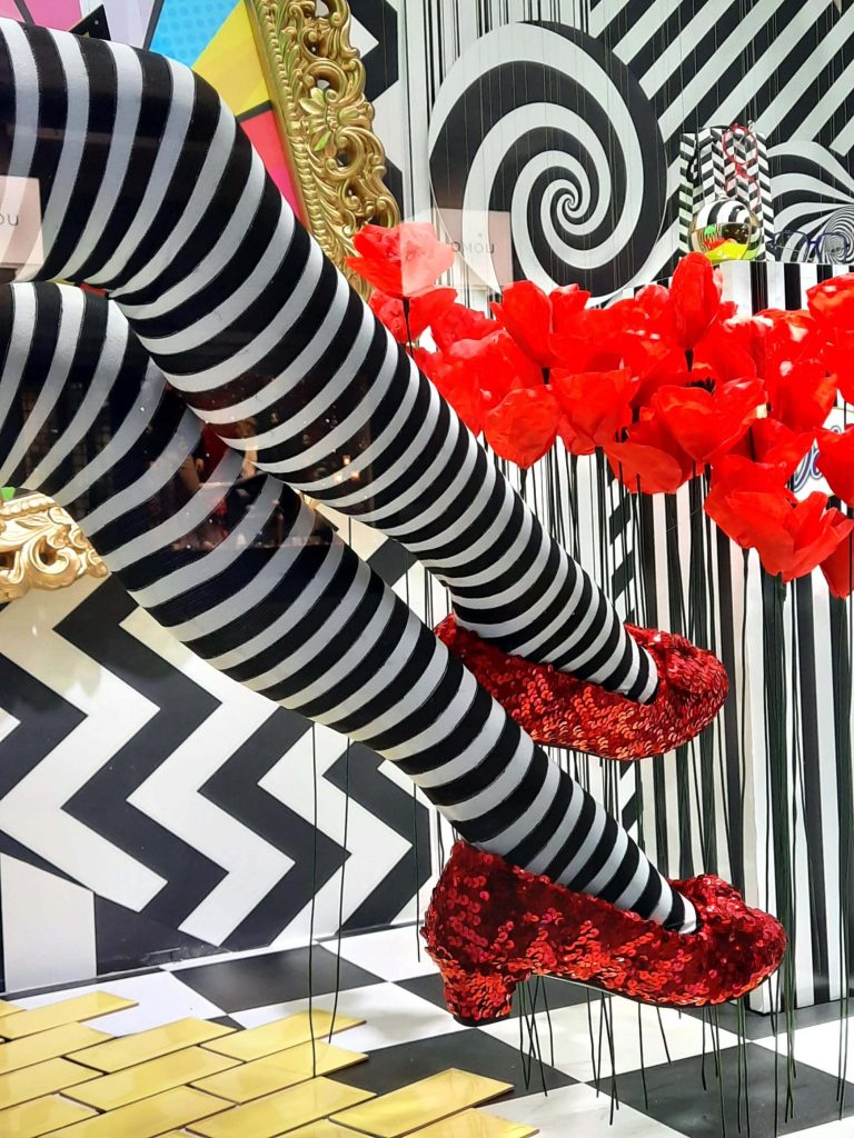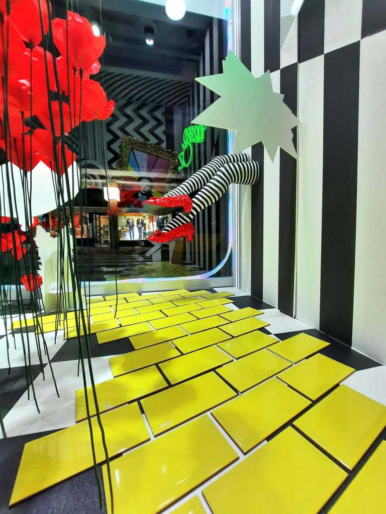 Este año, en nuestro escaparate de Navidad hemos jugado como niños, disfrutando con cada una de las líneas blancas o negras. Las hay rectas, inclinadas, en zig-zag… más anchas o más estrechas. Creando este entramado un tanto caótico en el que hemos querido representar a cada uno los protagonistas de este cuento. Un cuento que nos habla de echar una mirada a nuestro interior buscando lo mejor de cada uno y encontrando esa magia que ningún mago puede darnos.