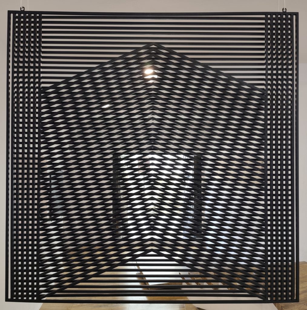 El Arte Óptico u Op Art (Optical Art) es una corriente artística surgida después de la II Guerra Mundial y cuyo propósito es generar ilusiones ópticas. El espectador se sorprende porque percibe volúmenes, movimiento y planos, en una obra completamente estática. Es habitual que la ilusión cambie según modificas la posición respecto a ella. De este modo, sugiere una inevitable interactuación con la misma. Para ello se sirven de líneas rectas o sinuosas, contrastes cromáticos y repetición de patrones geométricos. La finalidad es engañar al cerebro a través de los ojos. Las esculturas de esta corriente se catalogan como Arte Cinético por el movimiento que aparentan. Victor Vasarely es considerado el “padre” de este movimiento con su obra “Zebra, 1937”