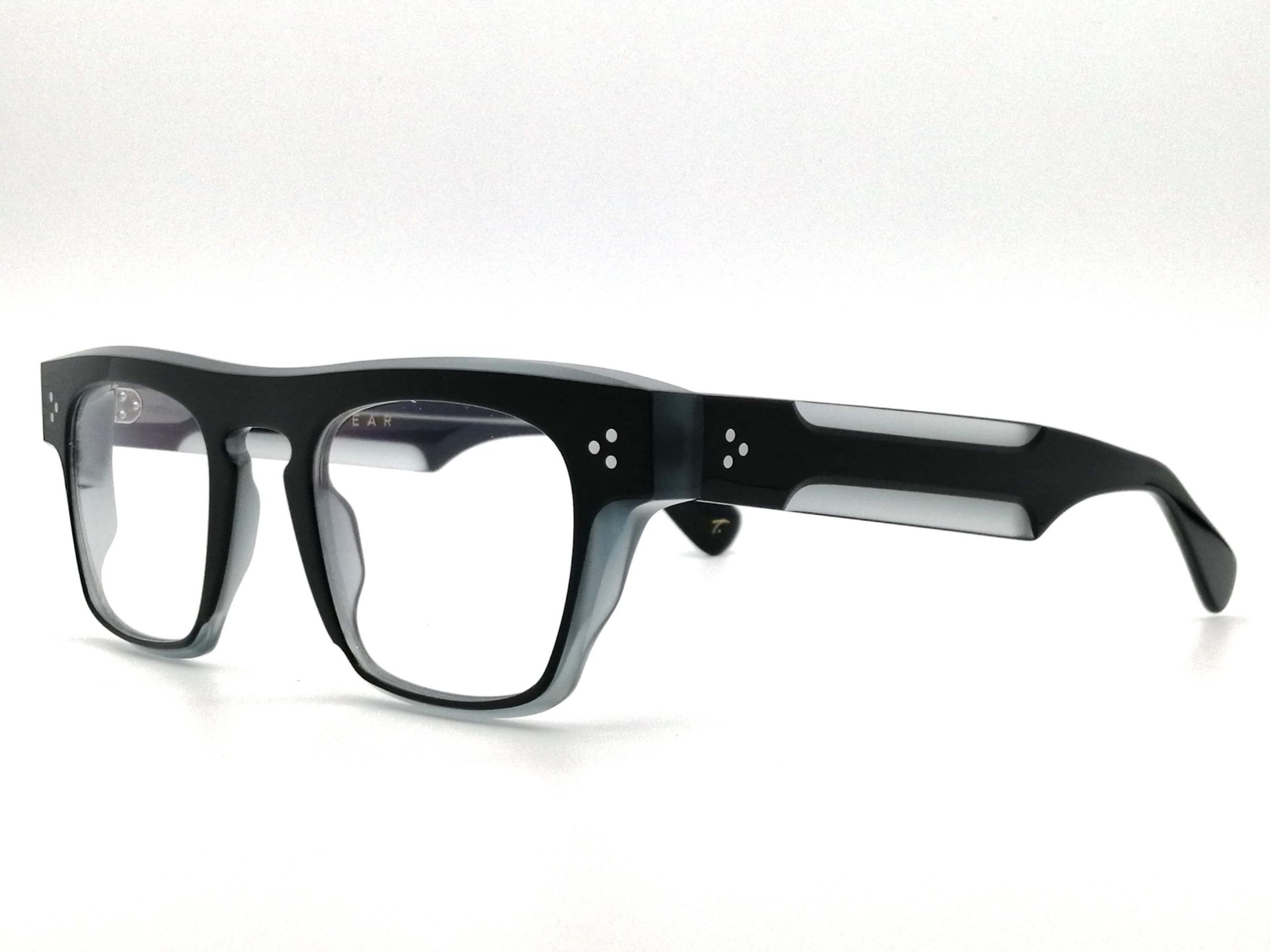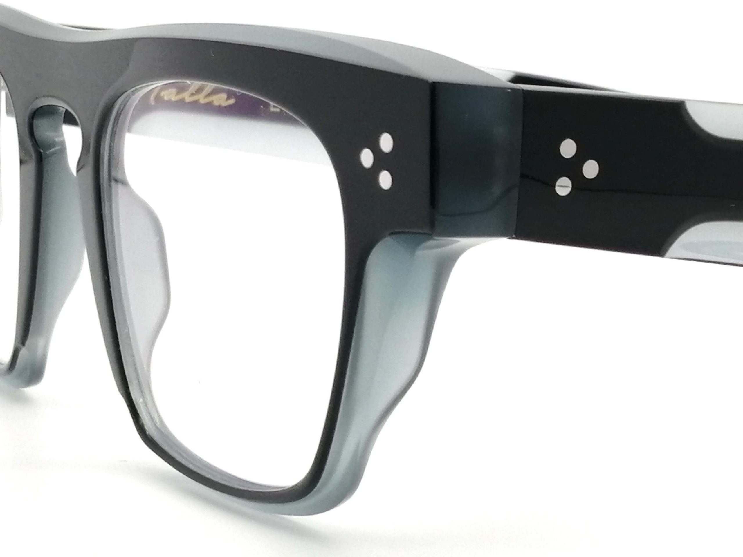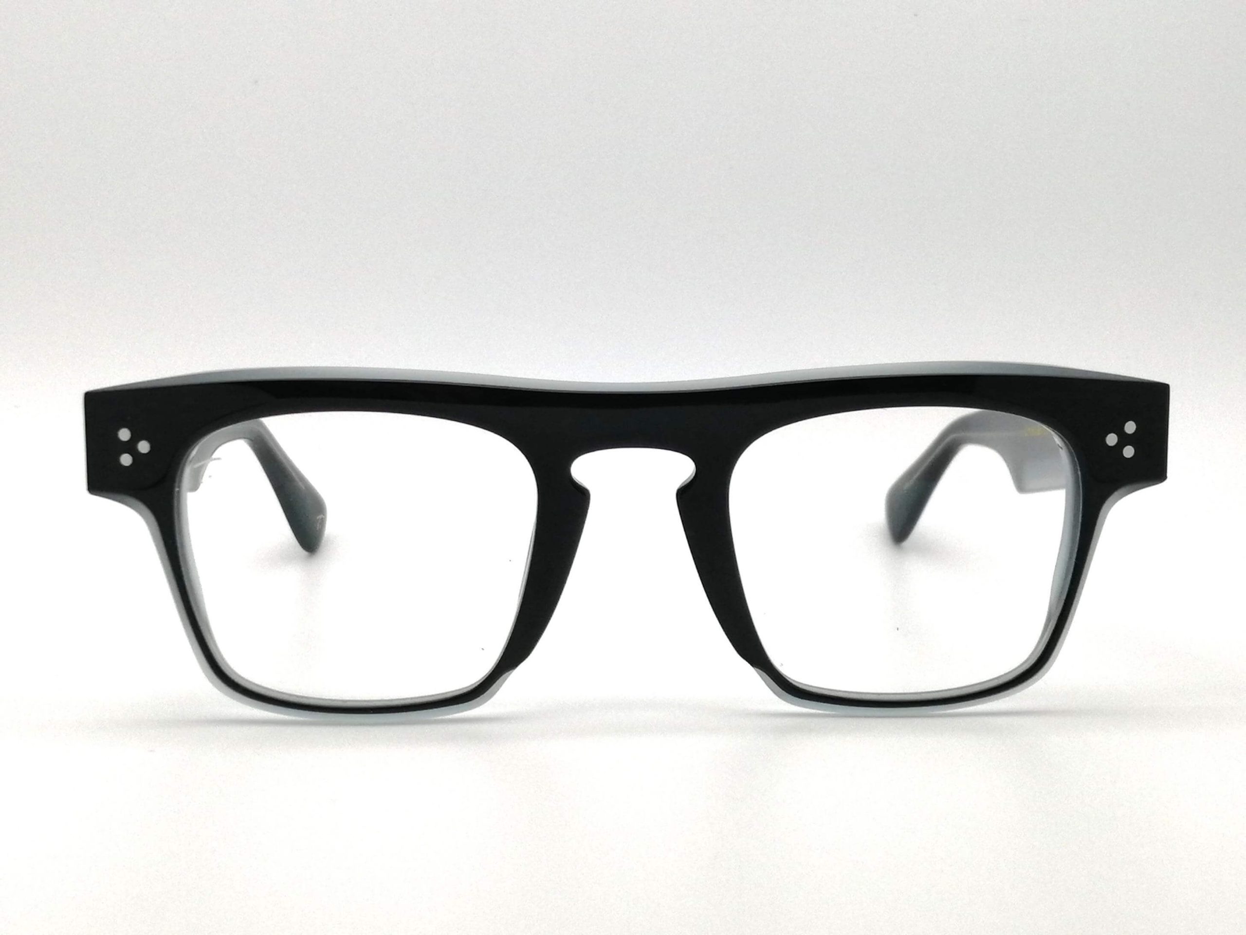 Esta montura masculina destaca por su acetato translúcido en un sofisticado tono negro con transparencia gris, una elección cromática que aporta frescura y una luminosidad moderna al rostro. Su diseño de inspiración panto, con líneas curvas suavizadas y un puente en llave, proyecta una imagen intelectual y refinada, ideal para el hombre que valora los detalles técnicos con un toque de vanguardia.