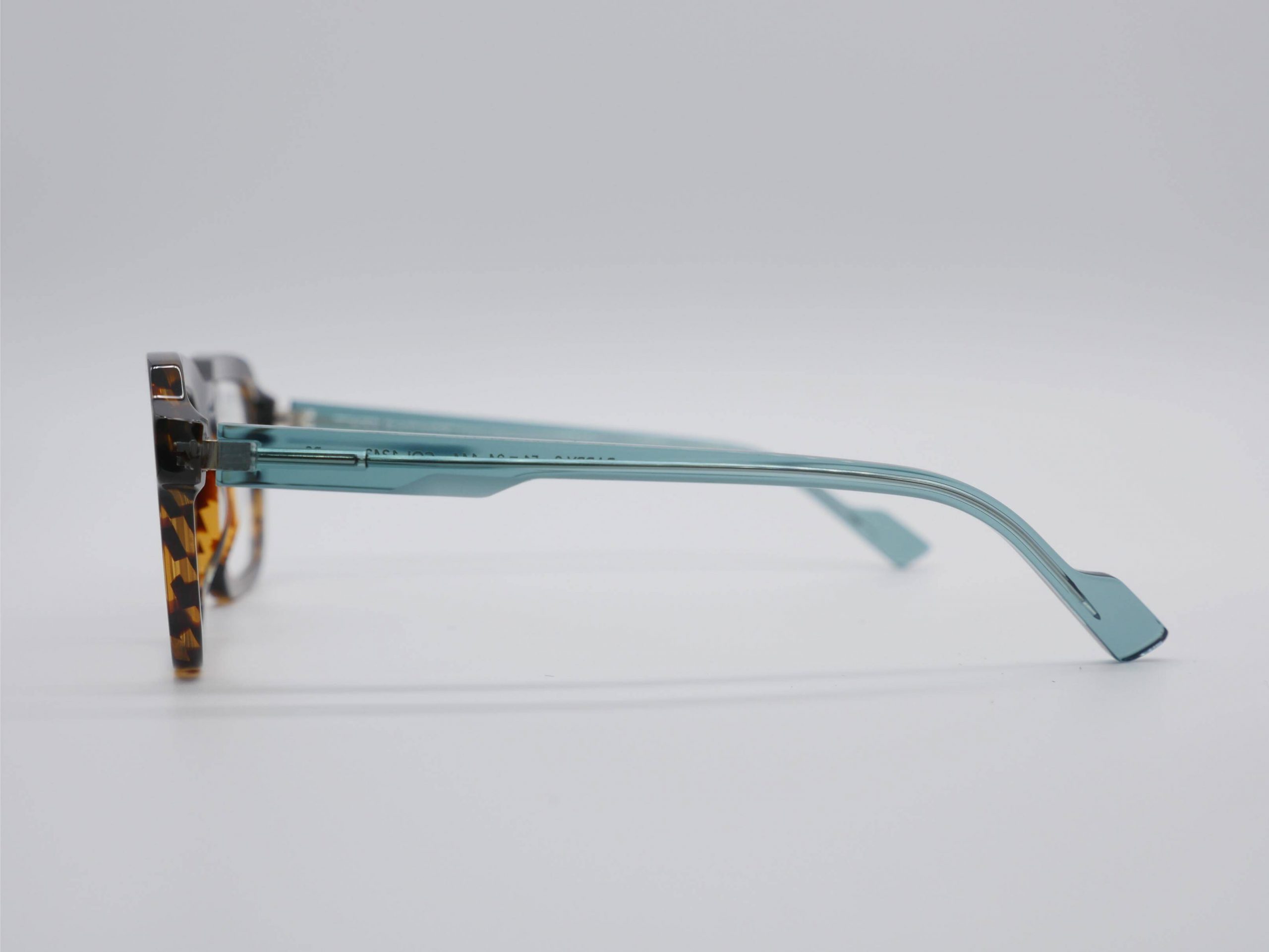 Concebida para el hombre contemporáneo, esta montura de acetato premium destaca por su cautivador carey habana en tonos tierra y un aro naranja. Su diseño geométrico aporta una fuerza expresiva única a la mirada, equilibrando audacia y clasicismo.