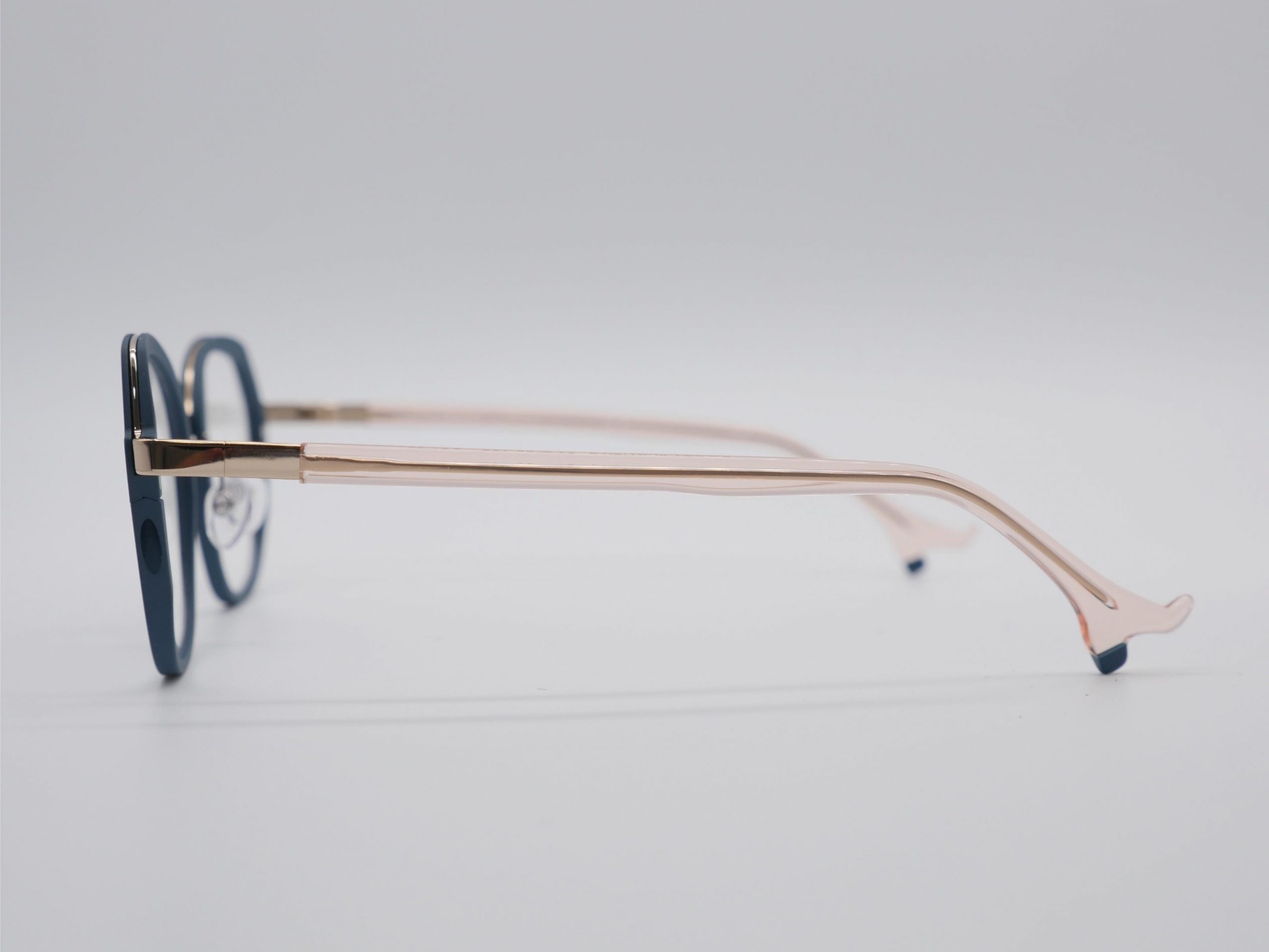 Esta montura femenina, magistralmente esculpida en titanio con una exquisita combinación de tonos verdes y con acentos nude traslúcidos que iluminan el rostro. Su diseño, caracterizado por las icónicas varillas que terminan en unos estilizados zapatos, aporta un carácter lúdico, femenino y de una audacia sofisticada.