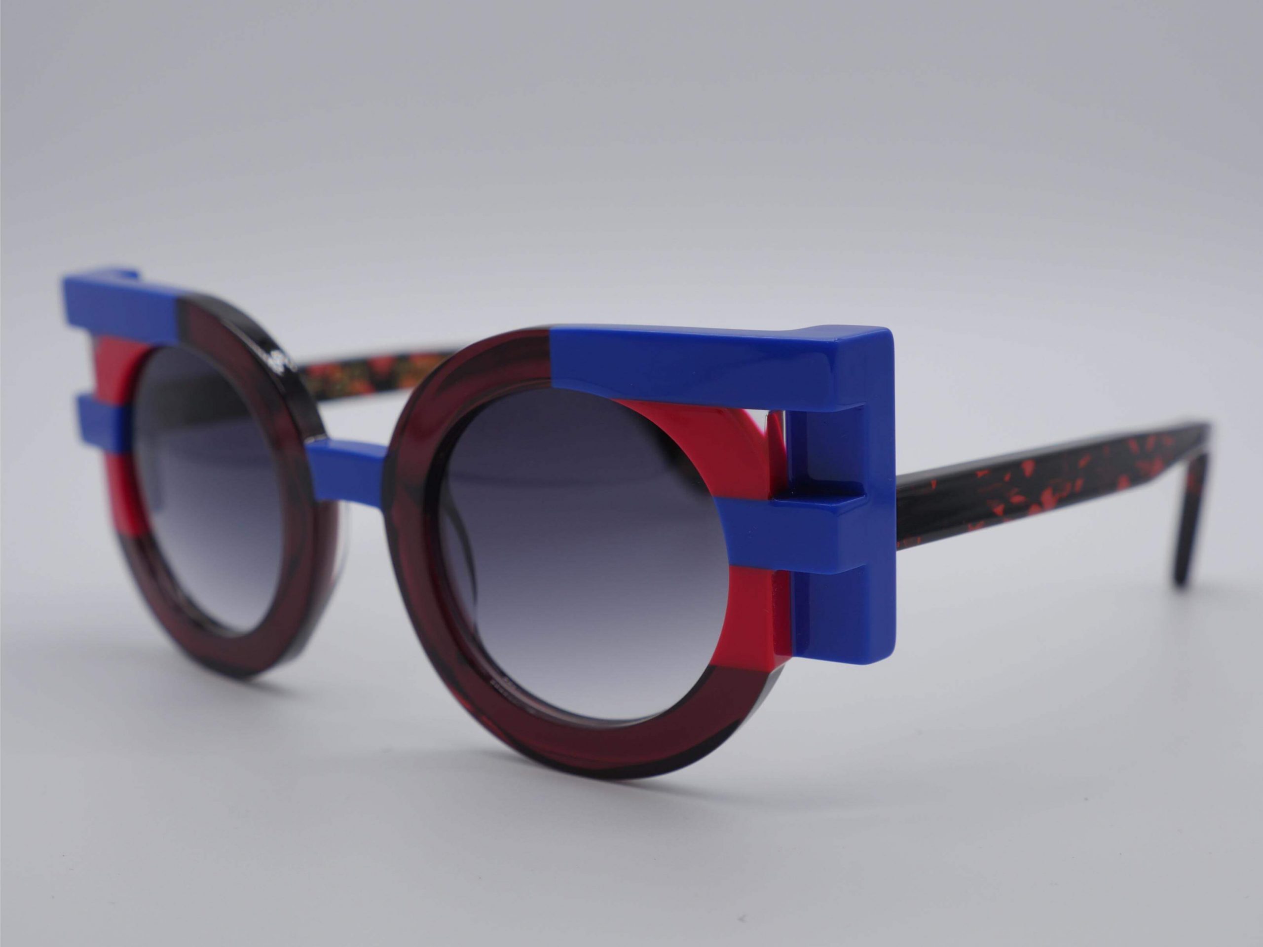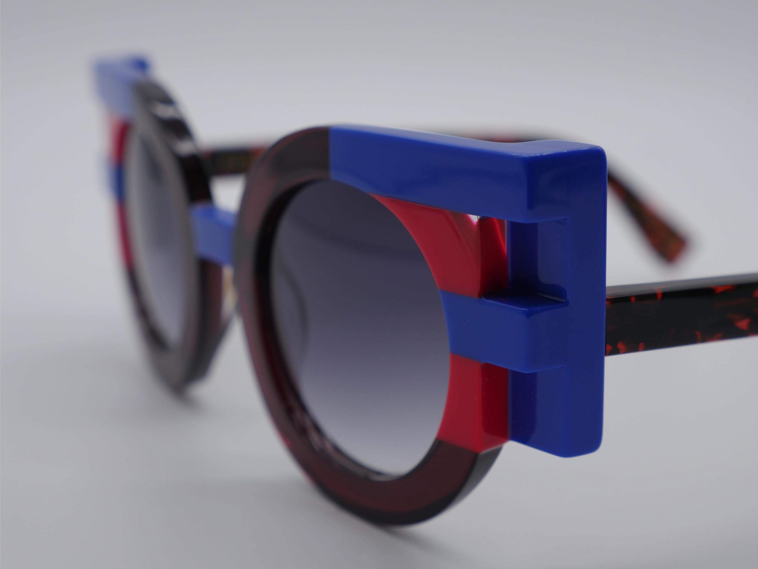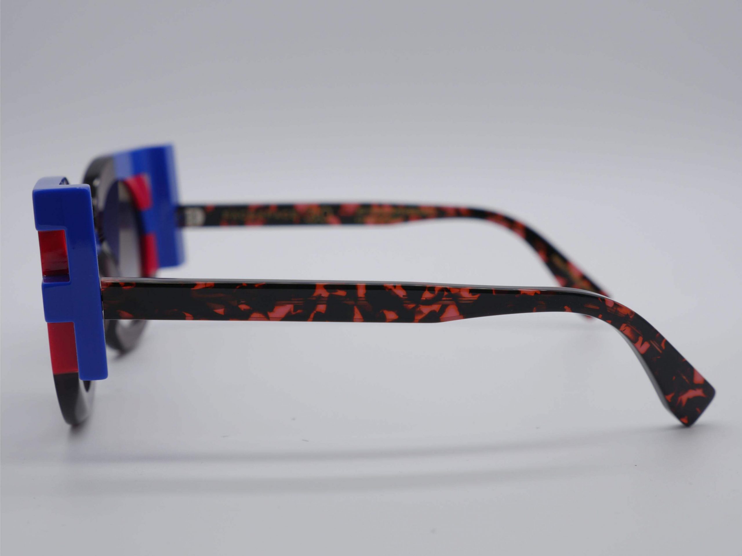 Esta montura femenina, esculpida en acetato de alta gama, deslumbra en una sofisticada composición de habana oscuro con detalles en azul eléctrico que emergen en los ángulos. Su arquitectura geométrica y audaz aporta una profundidad magnética a la mirada, ideal para rostros que buscan una identidad creativa y poderosa.