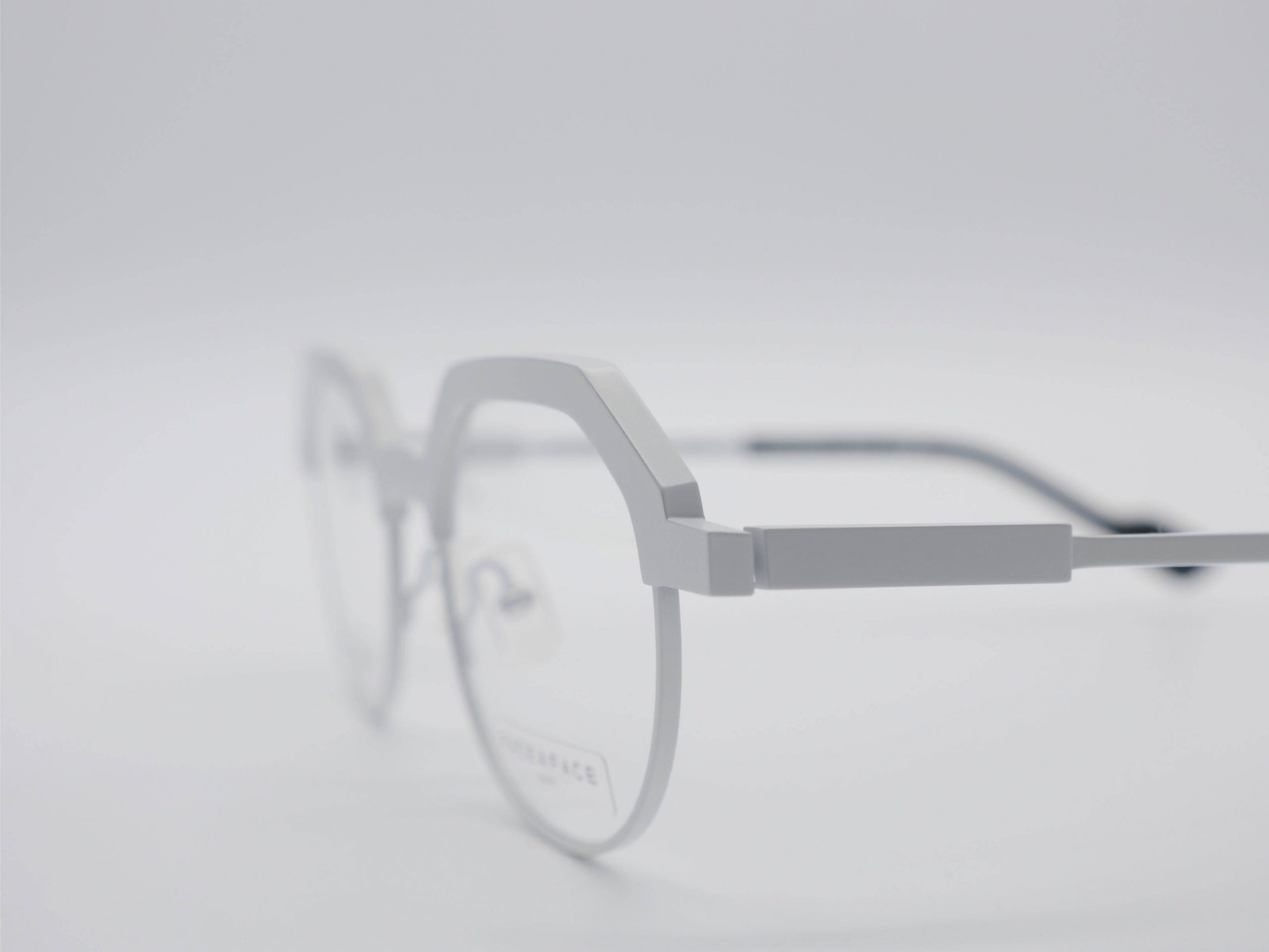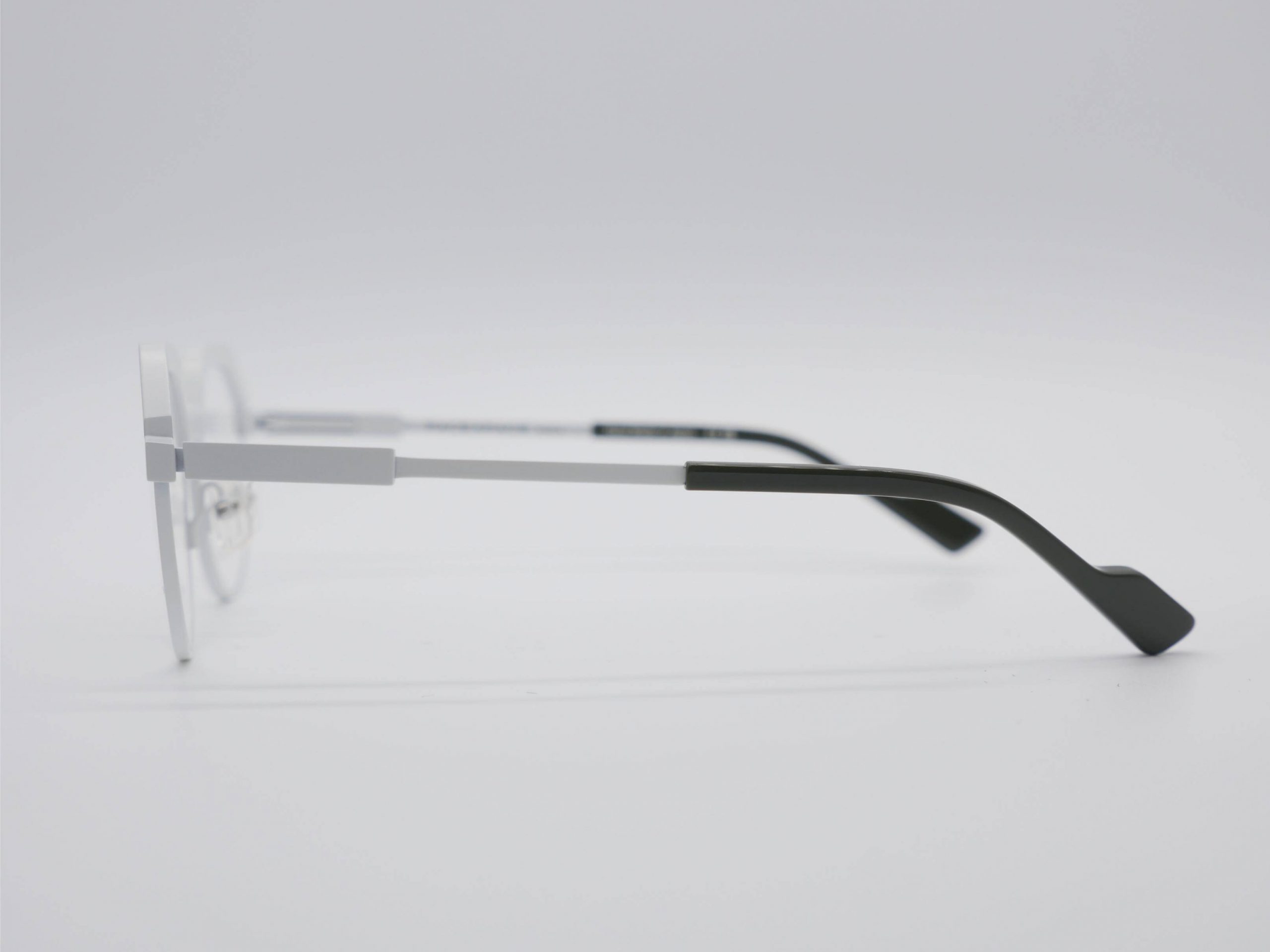 Esta montura masculina, manufacturada en titanio de calidad superior, destaca por su color blanco humo y por su arquitectura de líneas rectas y volúmenes sólidos, que aporta una mirada de autoridad creativa y un carácter marcadamente contemporáneo.
