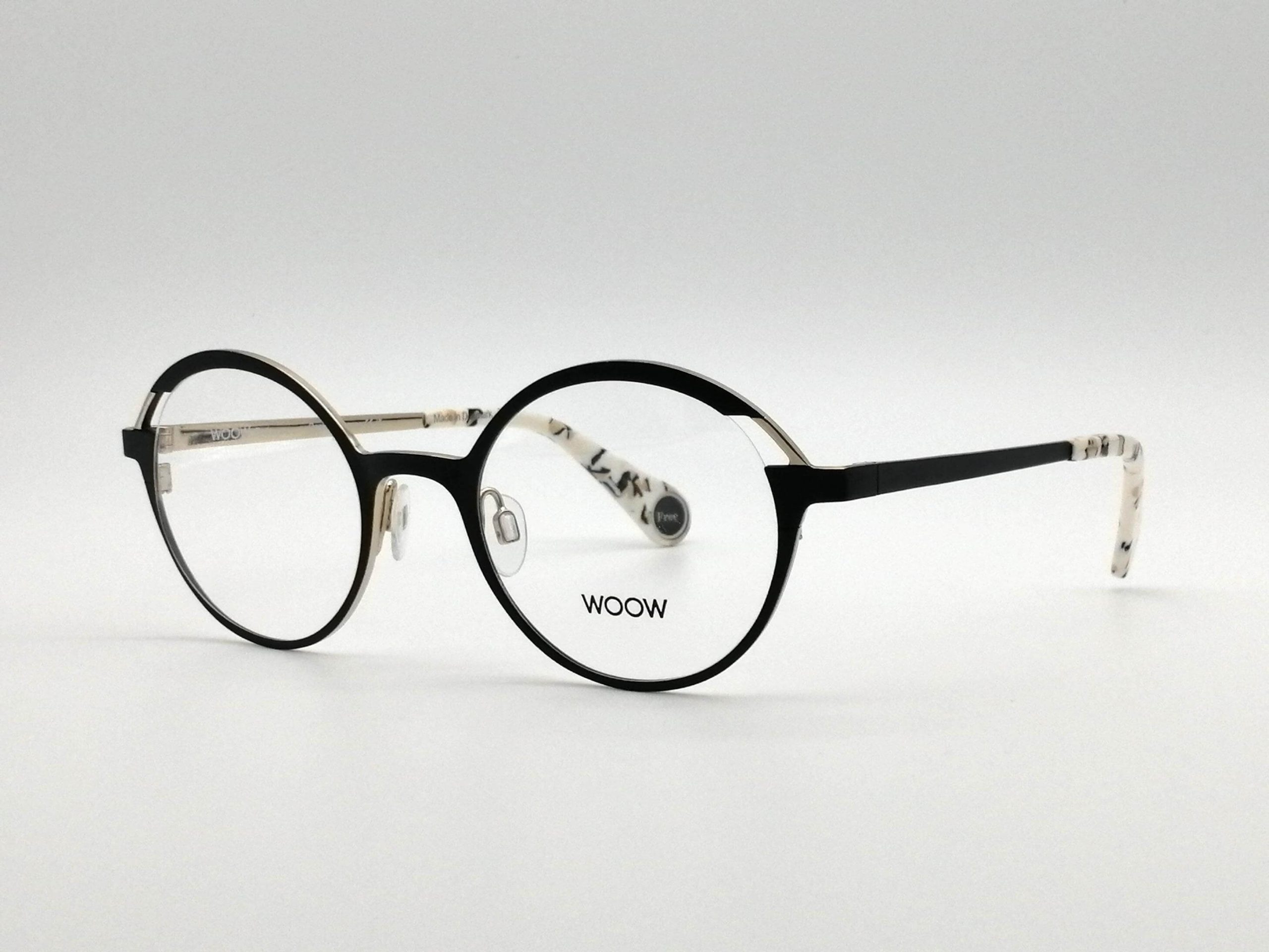 Esta montura femenina de inspiración retro-chic fusiona el metal negro profundo con un toque dorado. El detalle de los terminales en un patrón bicolor aporta un espíritu lúdico a una mirada llena de magnetismo y modernidad.
