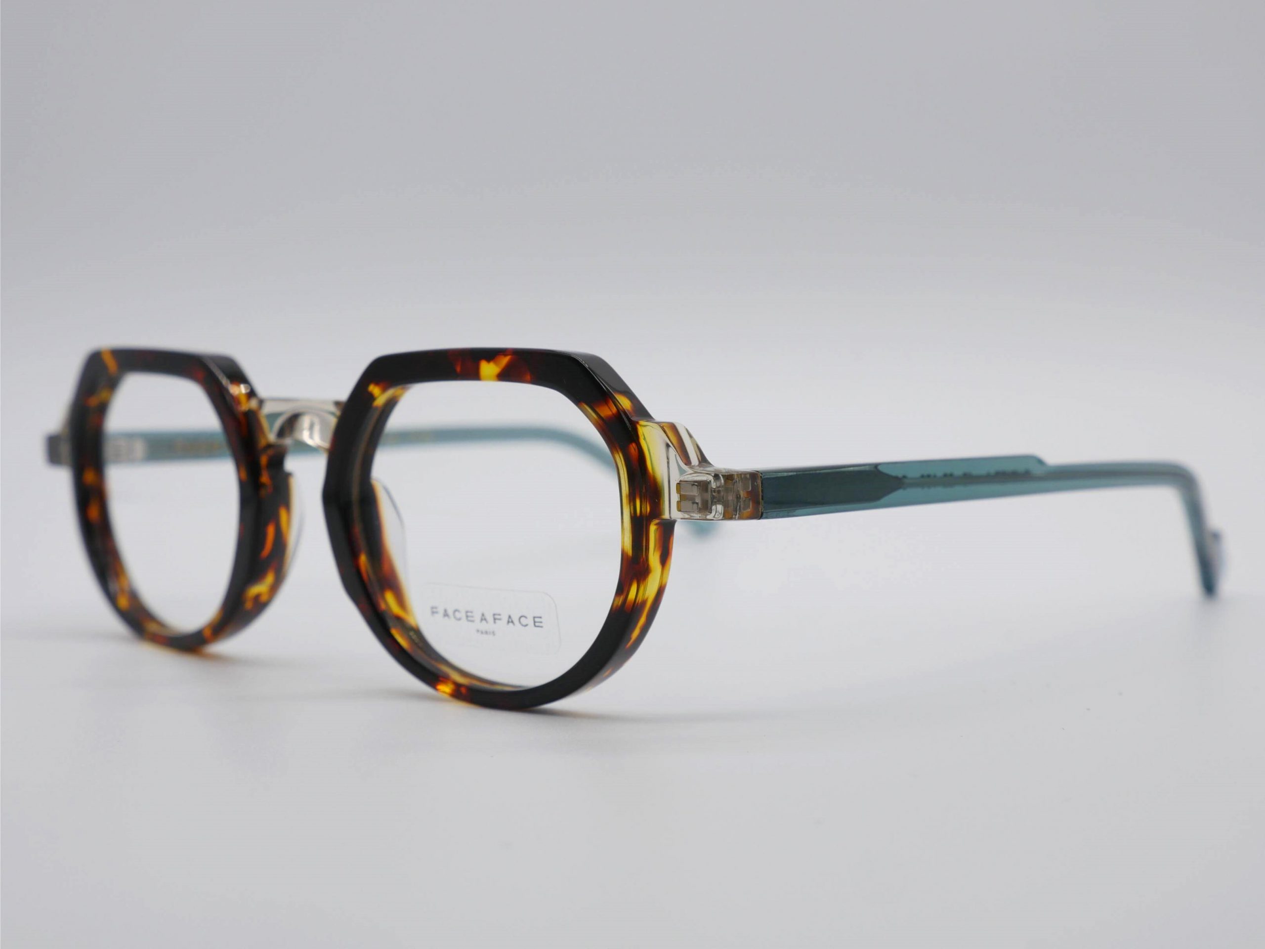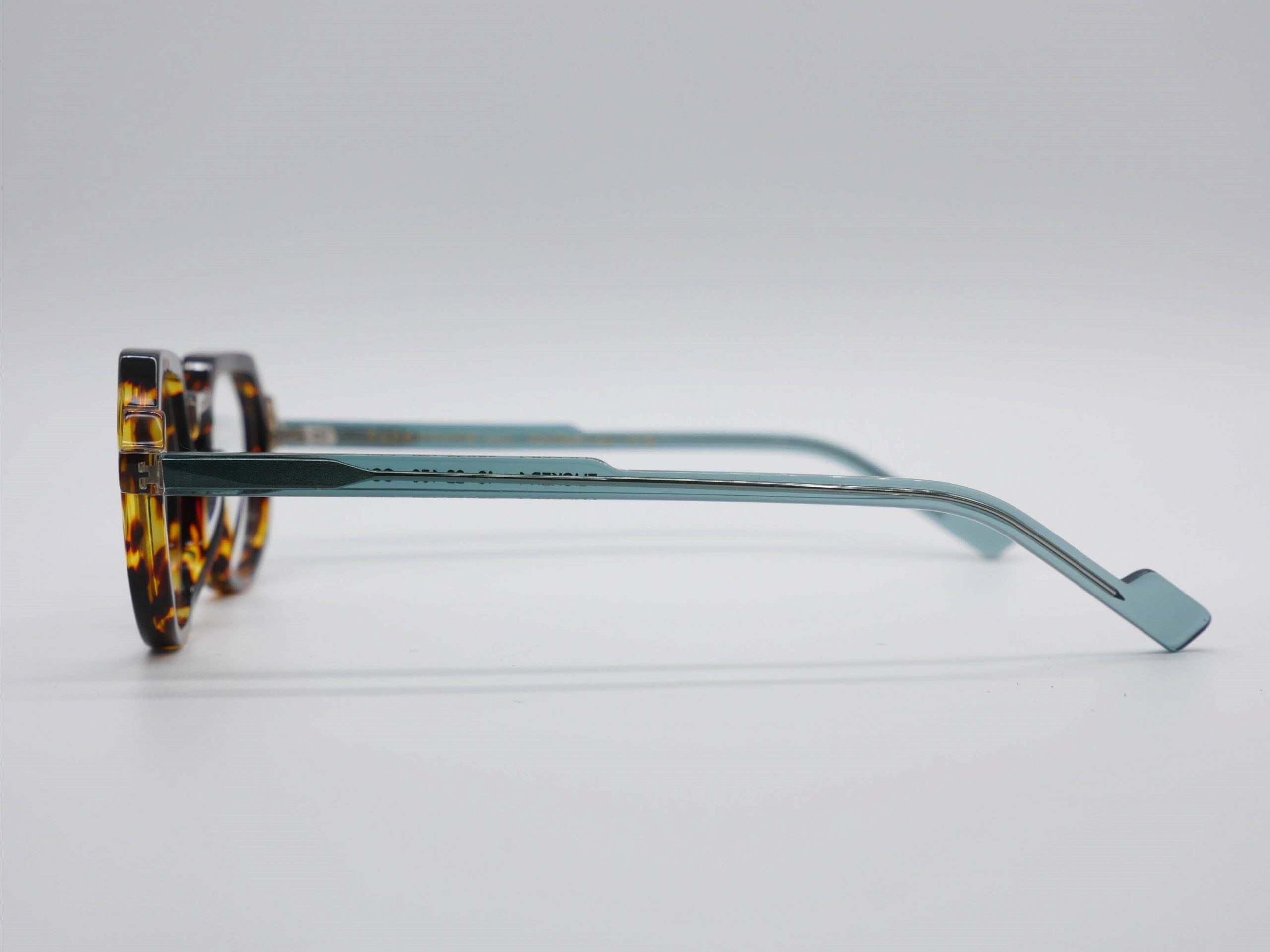 Diseñada para una mujer de espíritu creativo, esta montura de acetato premium deslumbra con un vibrante juego de contrastes en tonos carey y trasparentes con pinceladas verdes en las varillas. Su silueta geométrica, casi arquitectónica, aporta un carácter dinámico y magnético que realza los rasgos con una elegancia vanguardista y femenina.