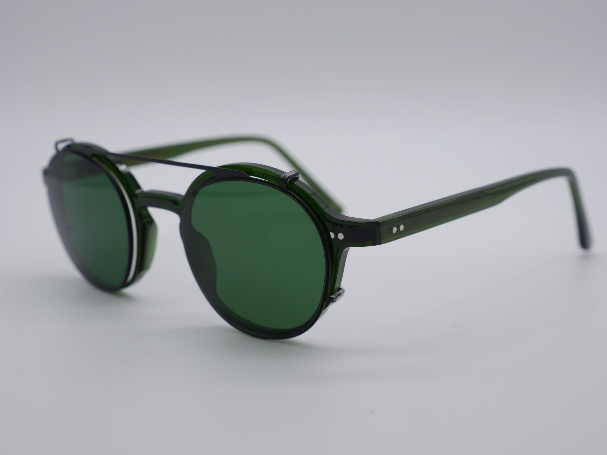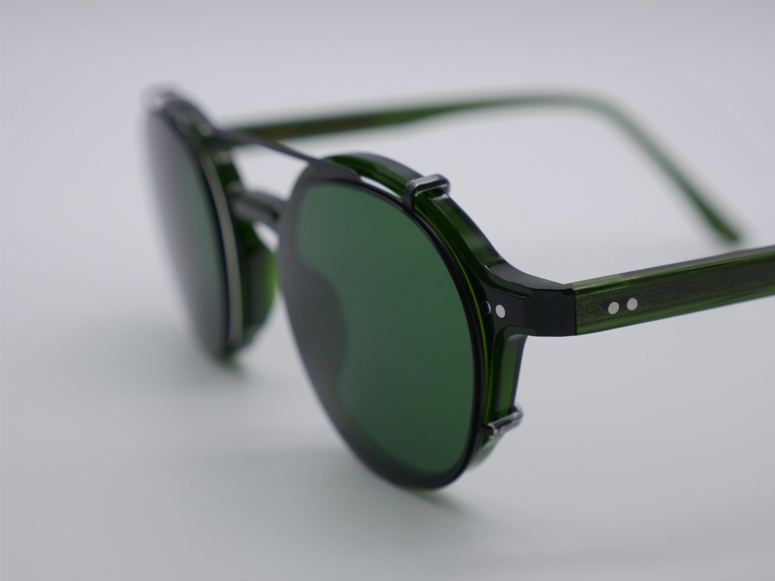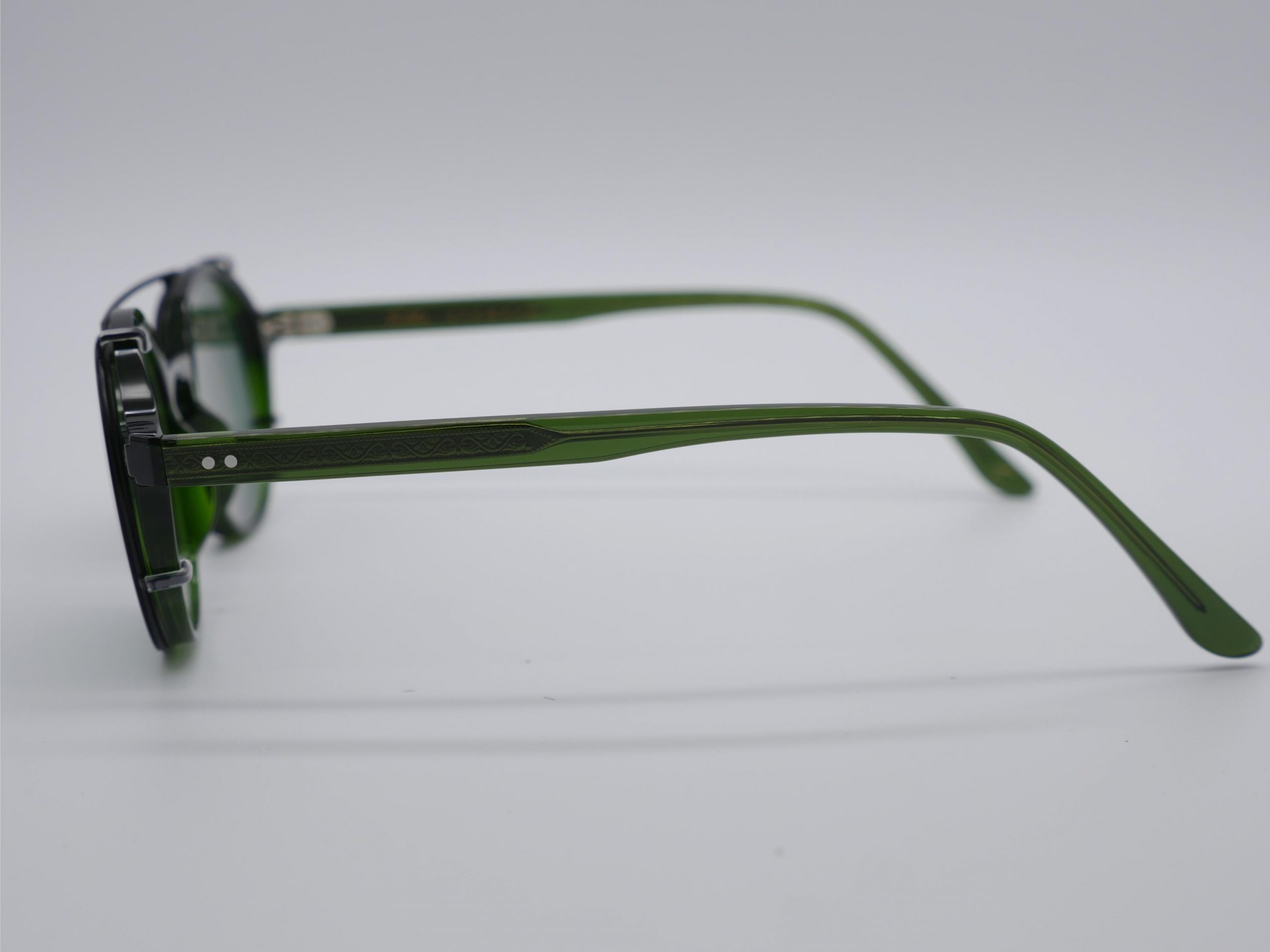 Esta montura masculina de silueta panto arquitectónica destaca por su elaboración en un acetato de doble laminación. El color verde aporta una mirada de gran fuerza expresiva y modernidad. Su carácter es decidido y creativo, proyectando una personalidad intelectual y segura. La robustez de su construcción artesanal se combina con una ligereza sorprendente, ofreciendo una pieza resistente que mantiene su brillo y ajuste originales ante el paso del tiempo.