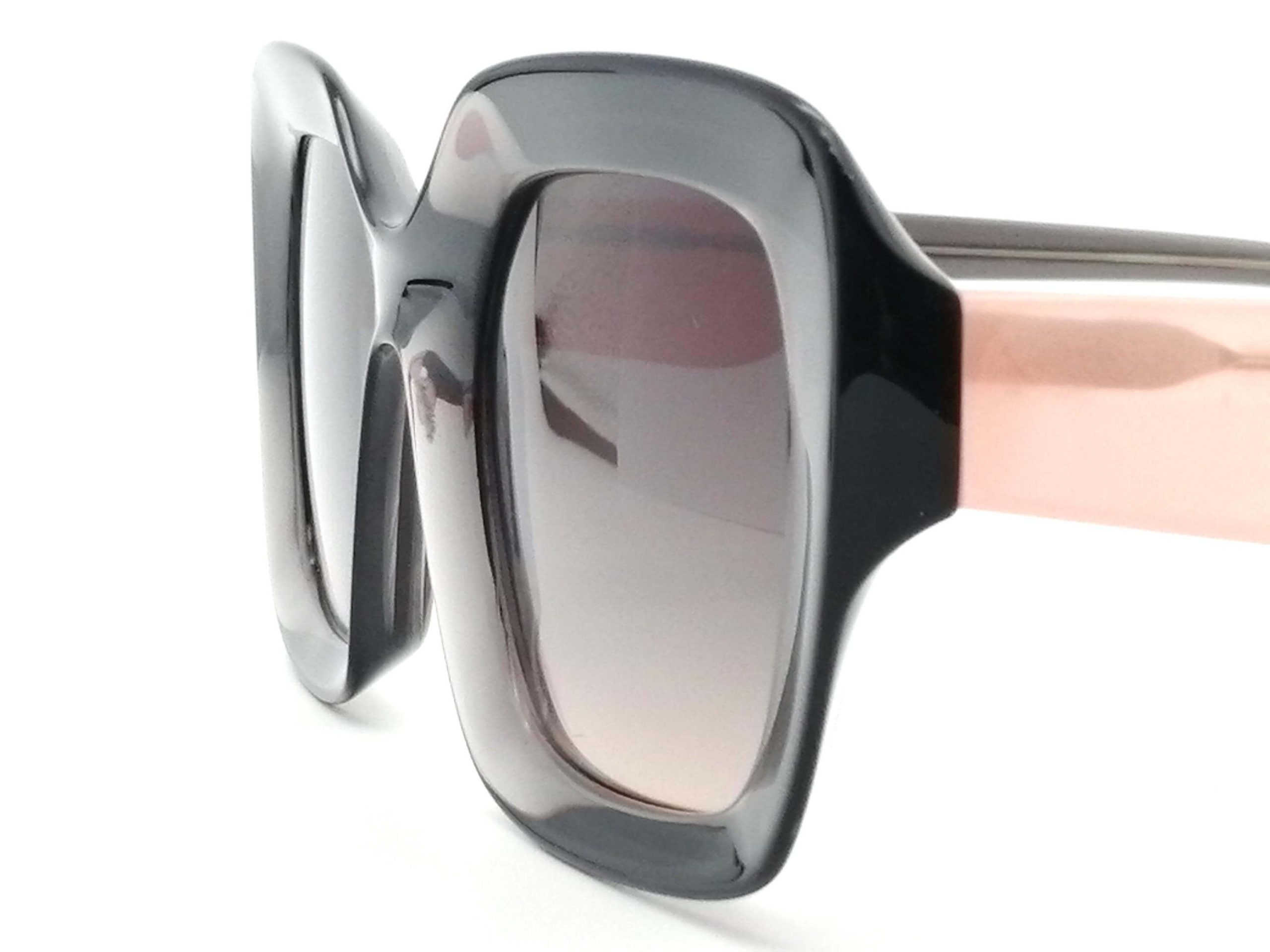 Destaca su juego de transparencias en acetato gris humo y unas varillas asimétricas con efecto color block en rosa palo, que equilibran vanguardia y ergonomía. La construcción técnica es impecable, con charnelas robustas y lentes degradadas que aportan protección y ese halo de misterio propio de Caroline Abram.