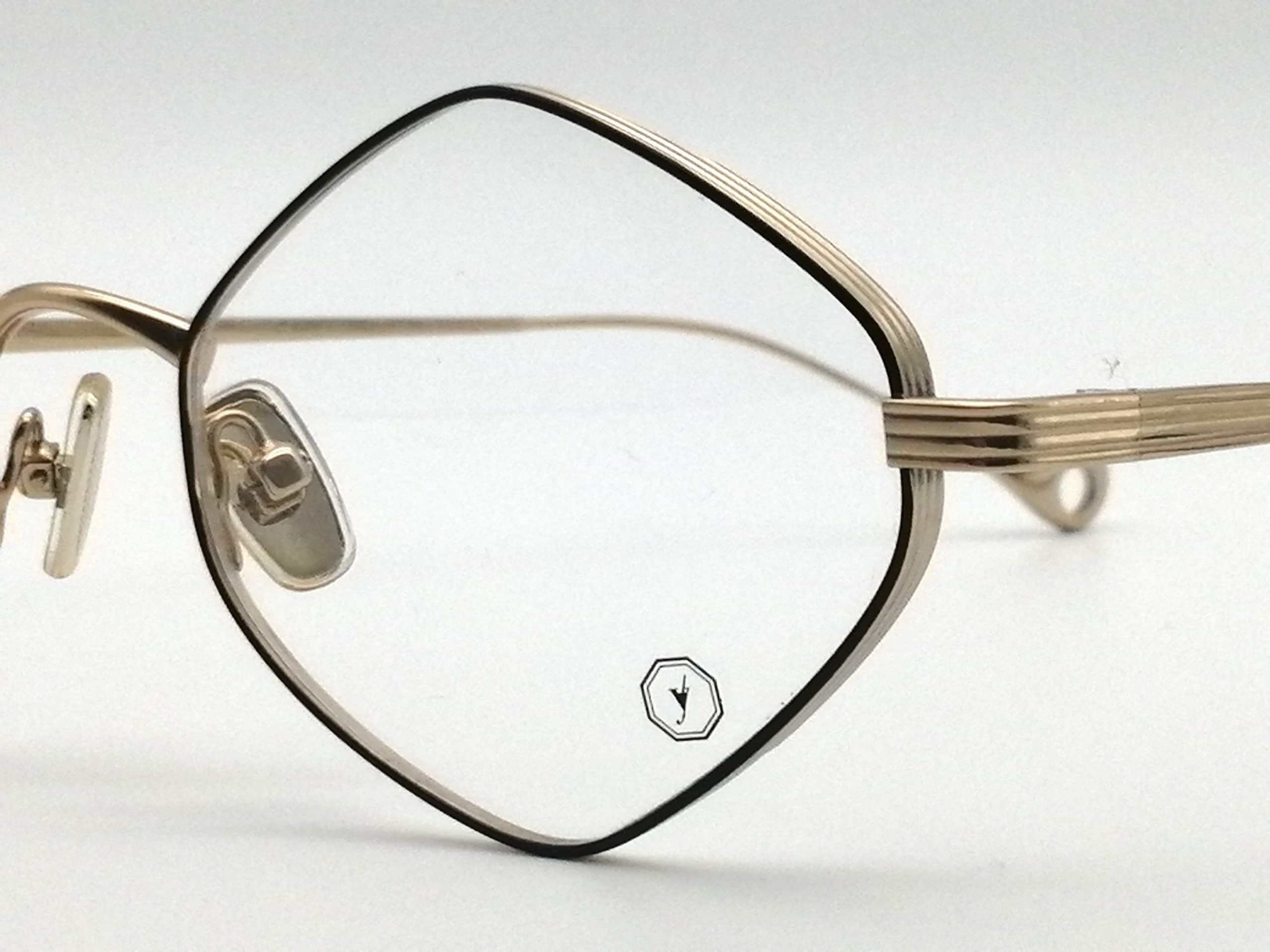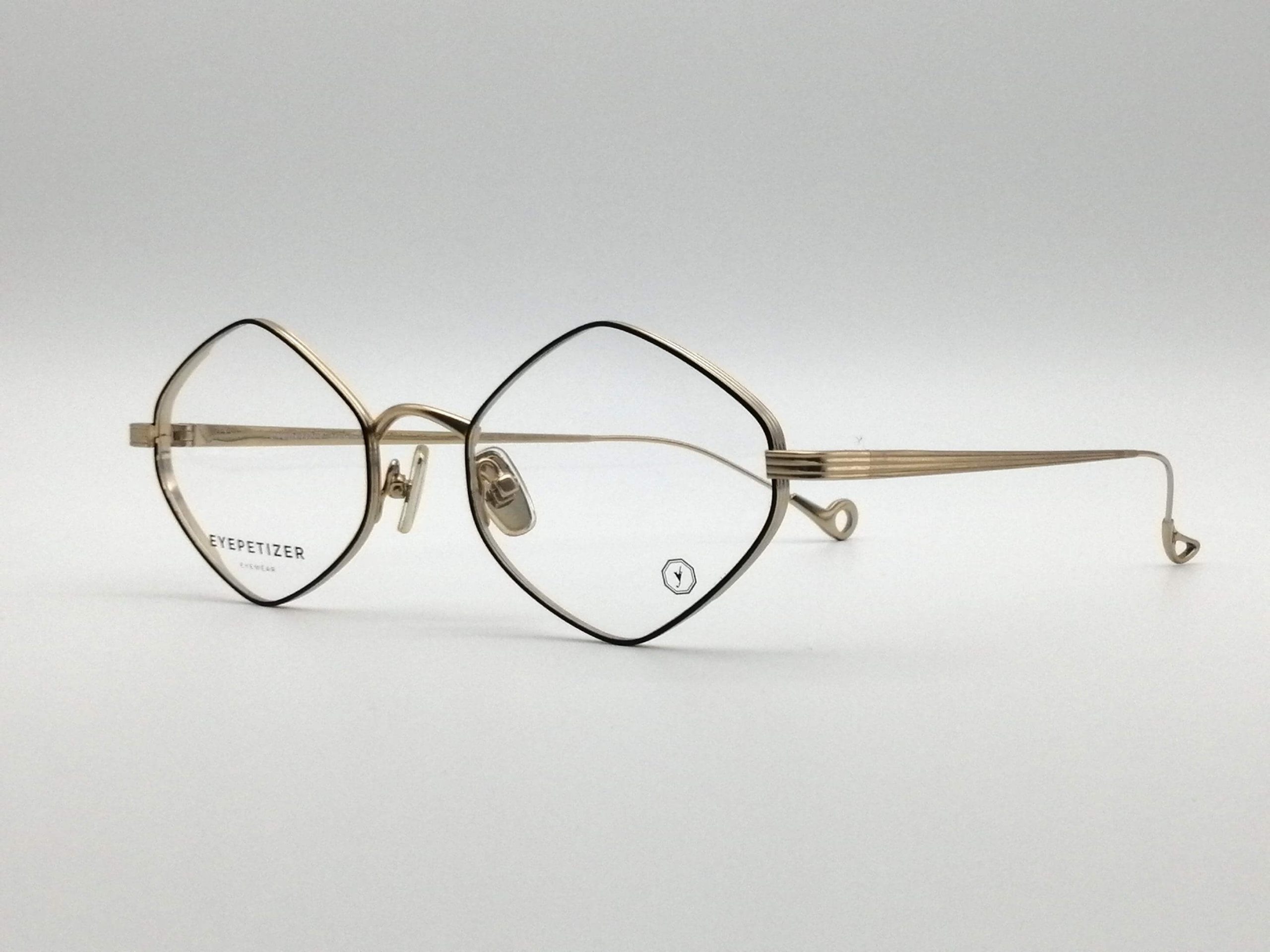 Esta montura unisex, forjada en metal ultraligero de tono dorado champán, presenta un frontal romboidal perfilado en esmalte negro profundo. Su diseño arquitectónico aporta una mirada vanguardista y artística, ideal para rostros que buscan romper con lo convencional mediante líneas nítidas y una elegancia minimalista.