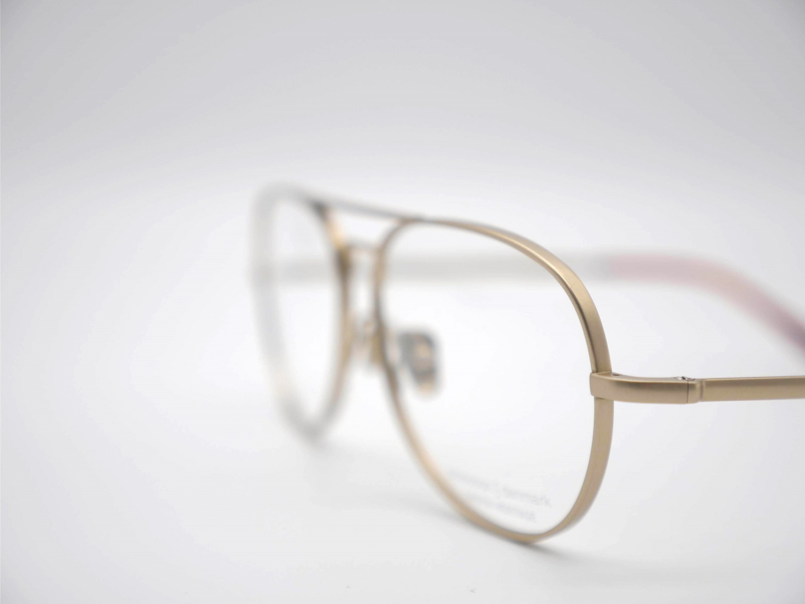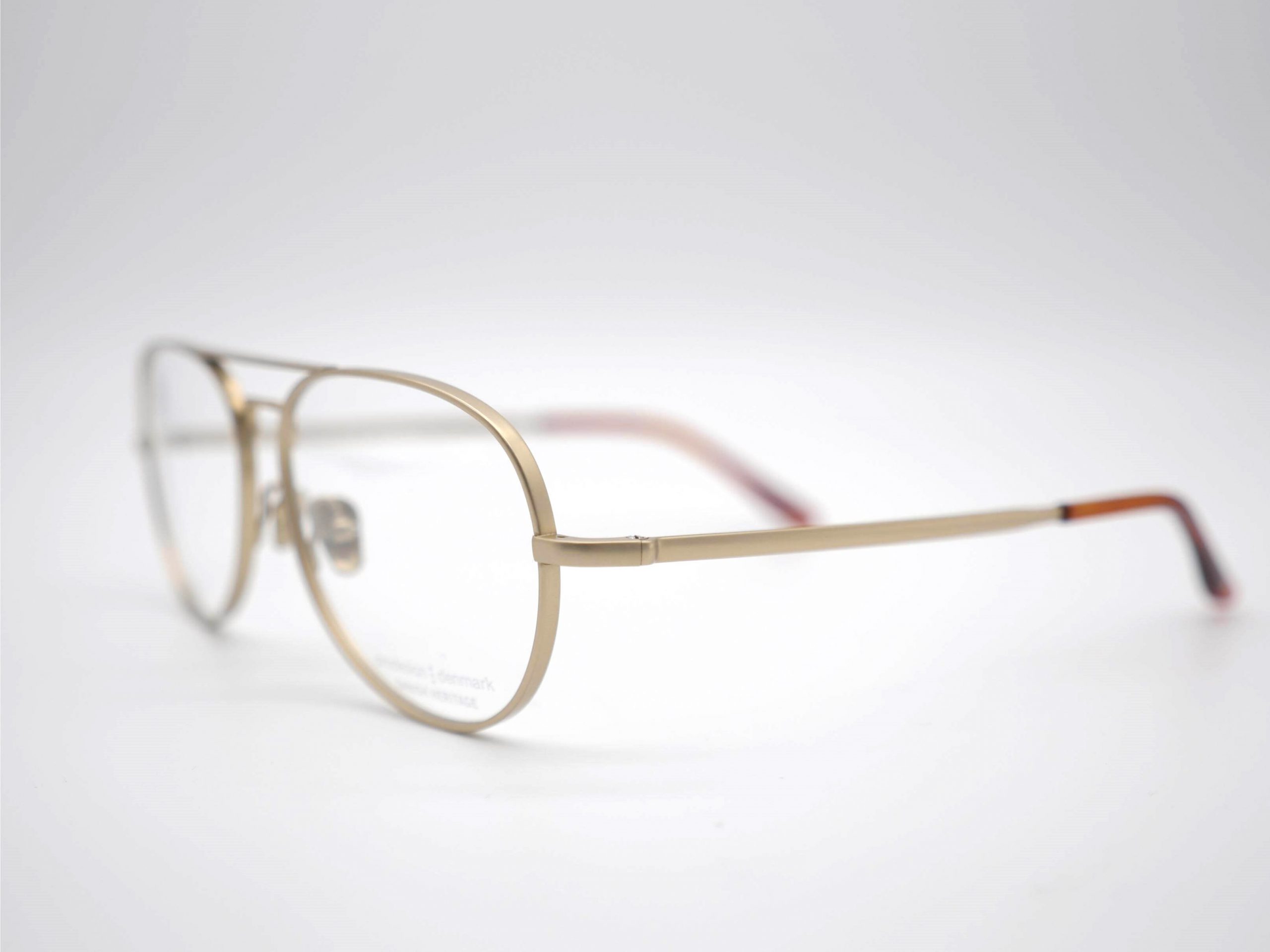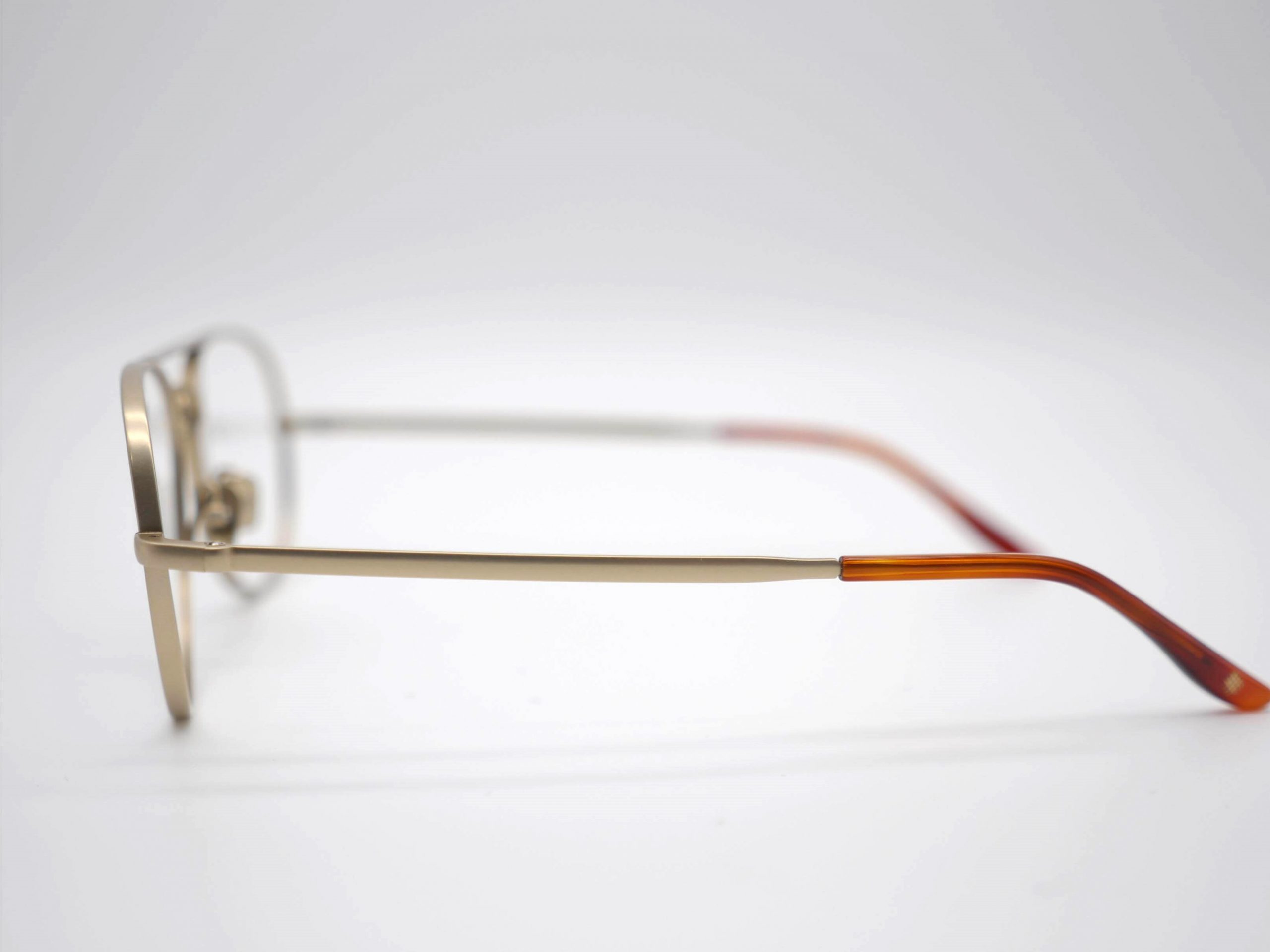Esta montura masculina se define por su estructura metálica esbelta y sutil en un tono dorado mate cepillado, que confiere una pureza visual excepcional y una elegancia sobria y decidida a la mirada. El diseño destaca por un puente arquitectónico de líneas limpias y unas varillas de ingeniería técnica que integran terminales ergonómicos, logrando un carácter minimalista y de vanguardia técnica.