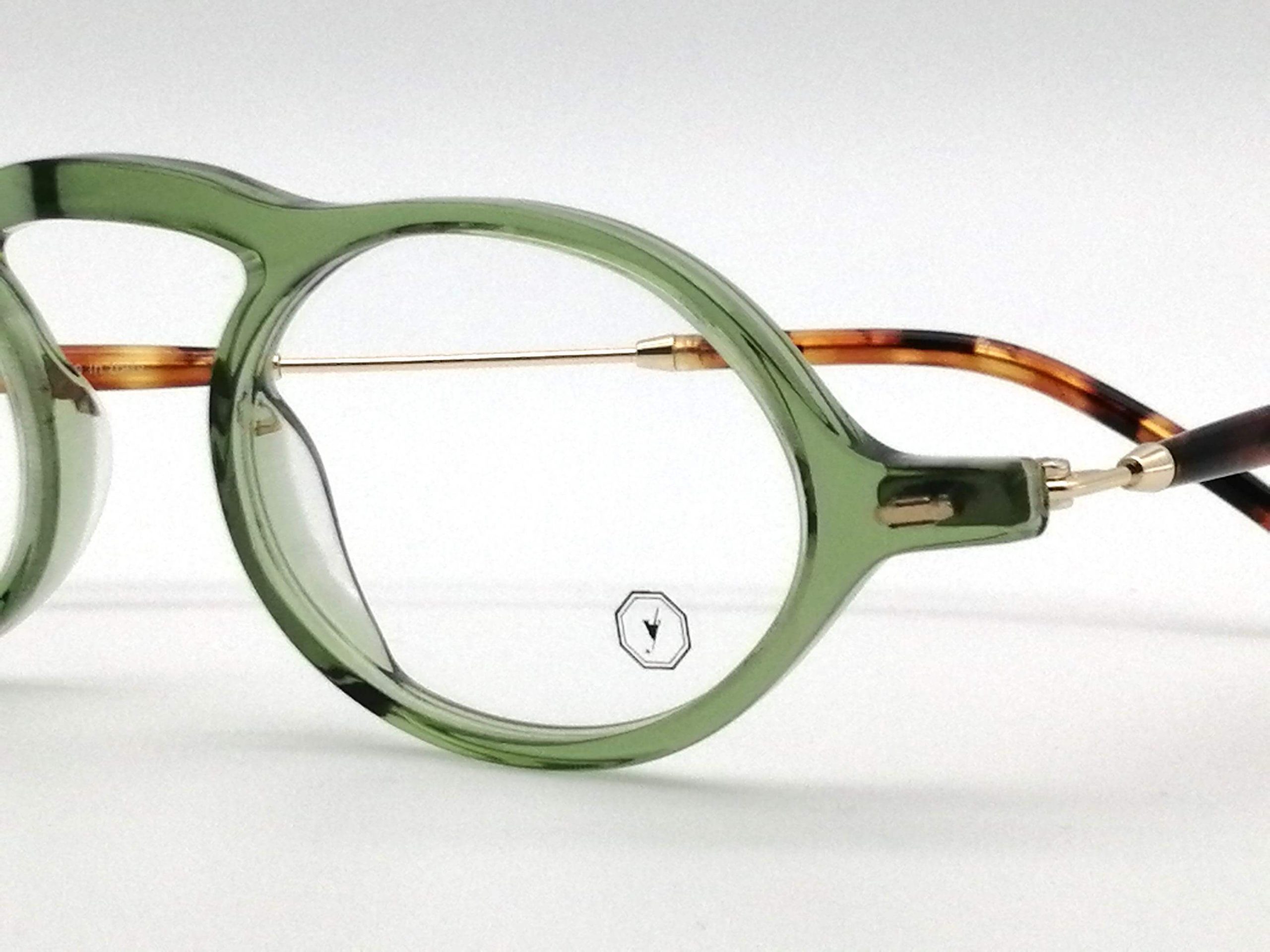 Esta montura unisex destaca por su audaz combinación de materiales: un frente de acetato premium en un profundo tono verde que armoniza con una estructura metálica minimalista con remates en carey. Su diseño de inspiración geométrica aporta un carácter intelectual y vanguardista, realzando la mirada con una elegancia que es a la vez clásica y disruptiva.