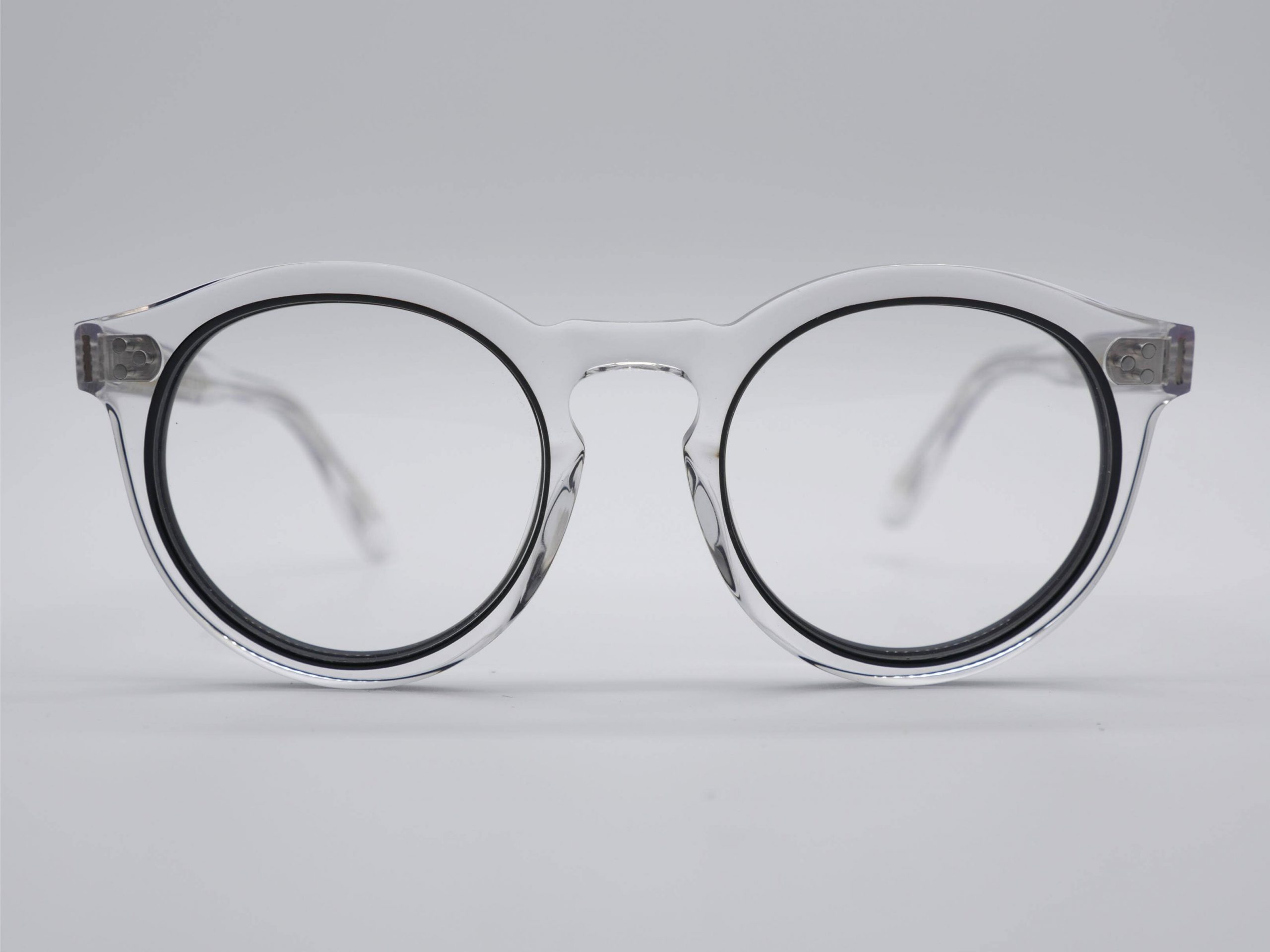 El modelo Quizz, en su acabado col.CB, presenta un acetato cristalino de una pureza excepcional que juega con las luces y sombras del rostro. Su estética masculina de inspiración retro se ve actualizada por una transparencia técnica que aporta claridad y frescura a la mirada, otorgando un aire de modernidad atemporal y una distinción que no necesita estridencias.