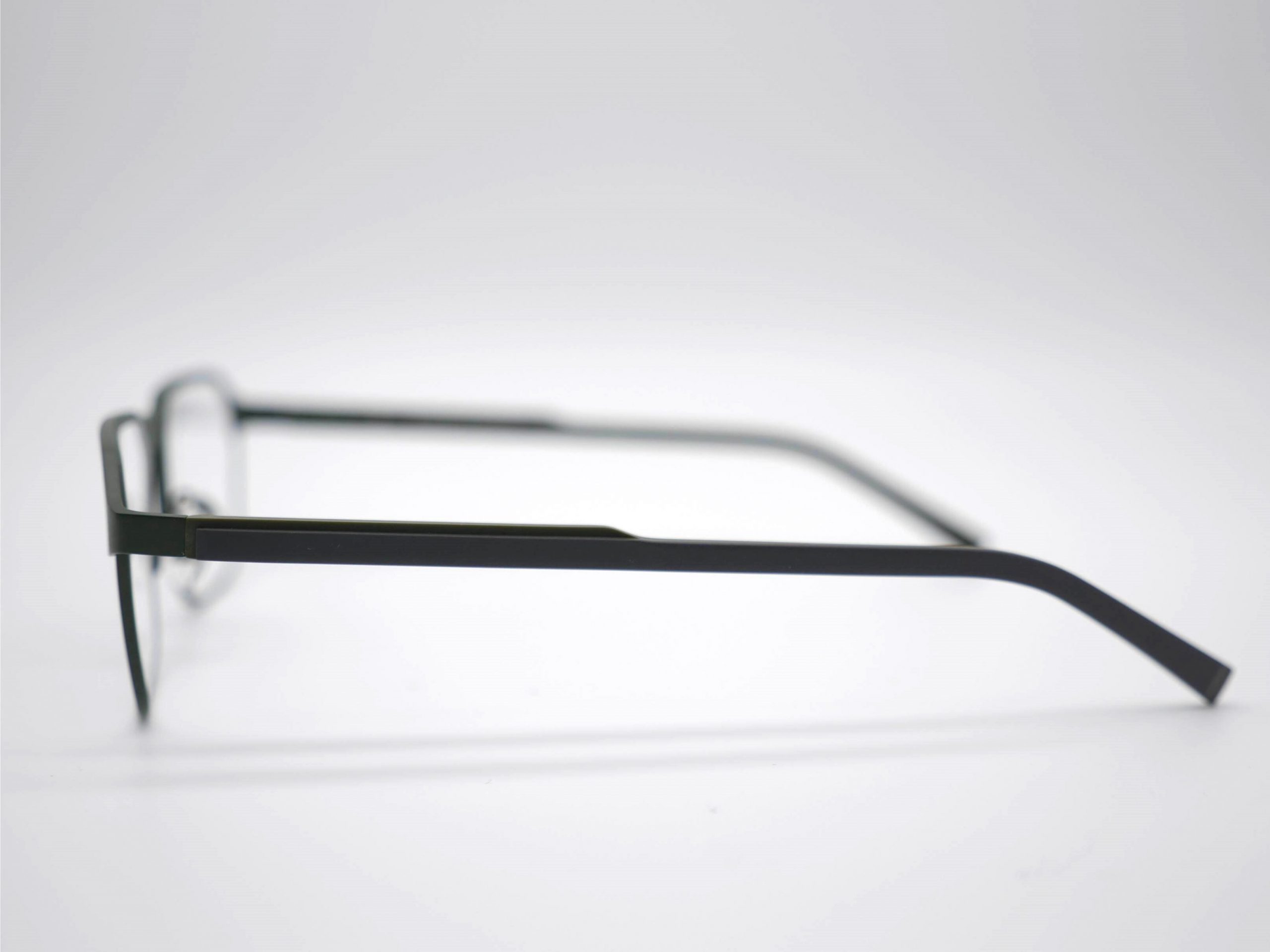Esta montura masculina resalta la naturalidad de las facciones. El puente y las varillas, fabricados en metal de alta precisión, presentan un refinado tono verde kaki con acabado mate, aportando un toque de color contemporáneo y sofisticado sin resultar invasivo. Los terminales en acetato complementan un conjunto tecnológicamente avanzado.