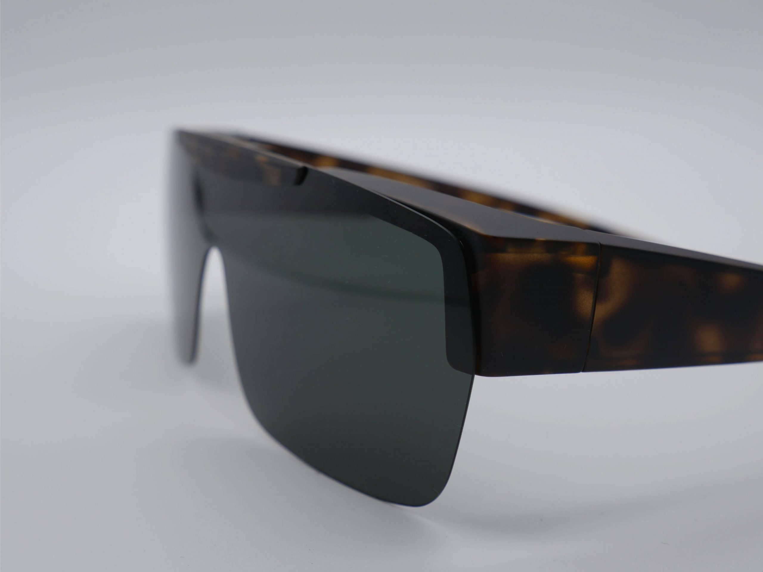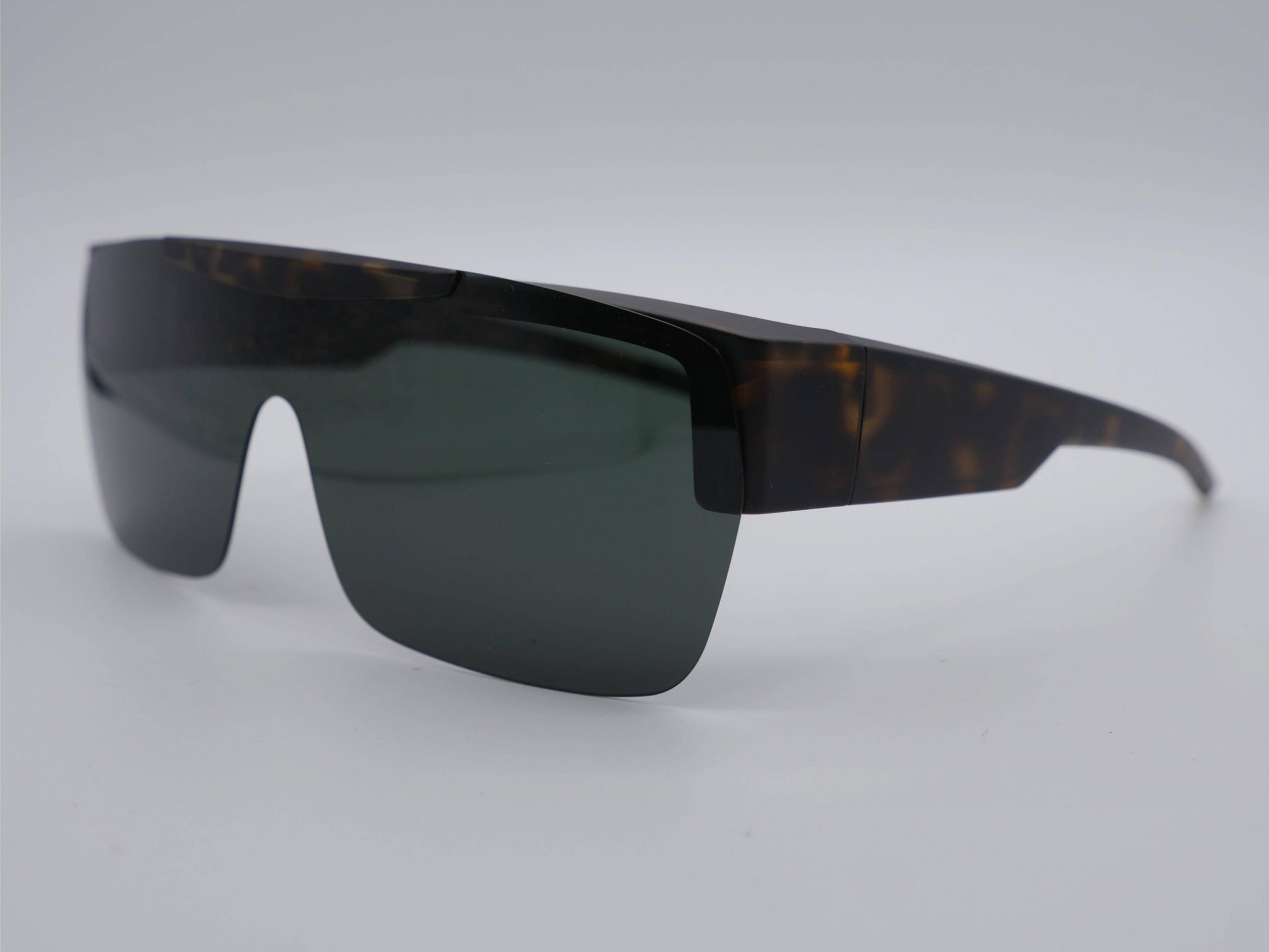Este suplemento de diseño unisex, presentado en un impecable carey mate, está fabricado en polímero ultraligero que se integra con discreción sobre su gafa de graduación. Su estética técnica y envolvente aporta un carácter dinámico y audaz, ideal para quienes buscan una imagen vanguardista y funcional. La pieza destaca por su versatilidad, ofreciendo una ligereza excepcional y una resistencia diseñada para el uso intensivo diario.