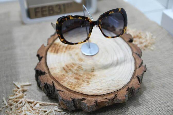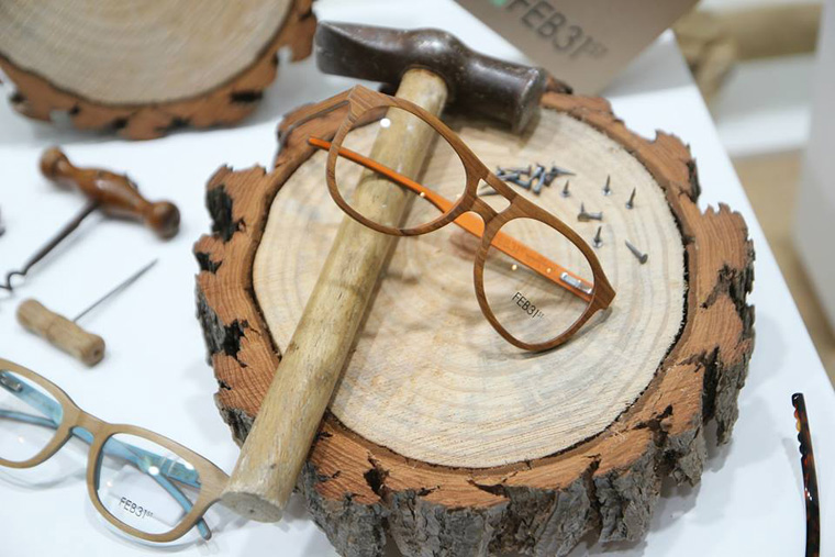 Este escaparate intenta recrear una antigua carpintería en la que entre virutas y herramientas antiguas, trabaja un artesano en el cuidadoso proceso de fabricación de unas gafas muy especiales. Sobre planchas de madera de pino se exhiben estas artesanas gafas de madera, modelos únicos y numerados de un artículo exclusivo y muy refinado.